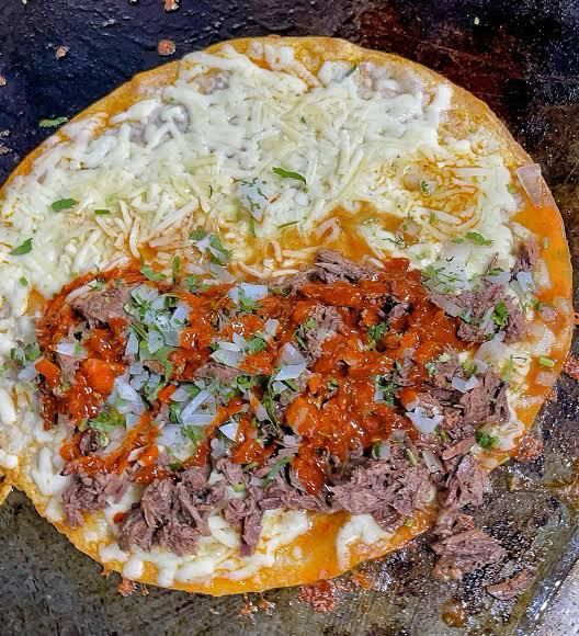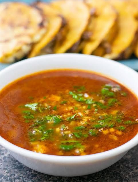 Porción grande de birria (1 Litro) con acompañamientos. (3 Tortillas, 1 tostadas, cebolla, cilantro).