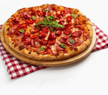 Morrón, cebolla, pepperoni y tocino. Incluye 1 oz de queso parmesano y 1 oz de chile quebrado.