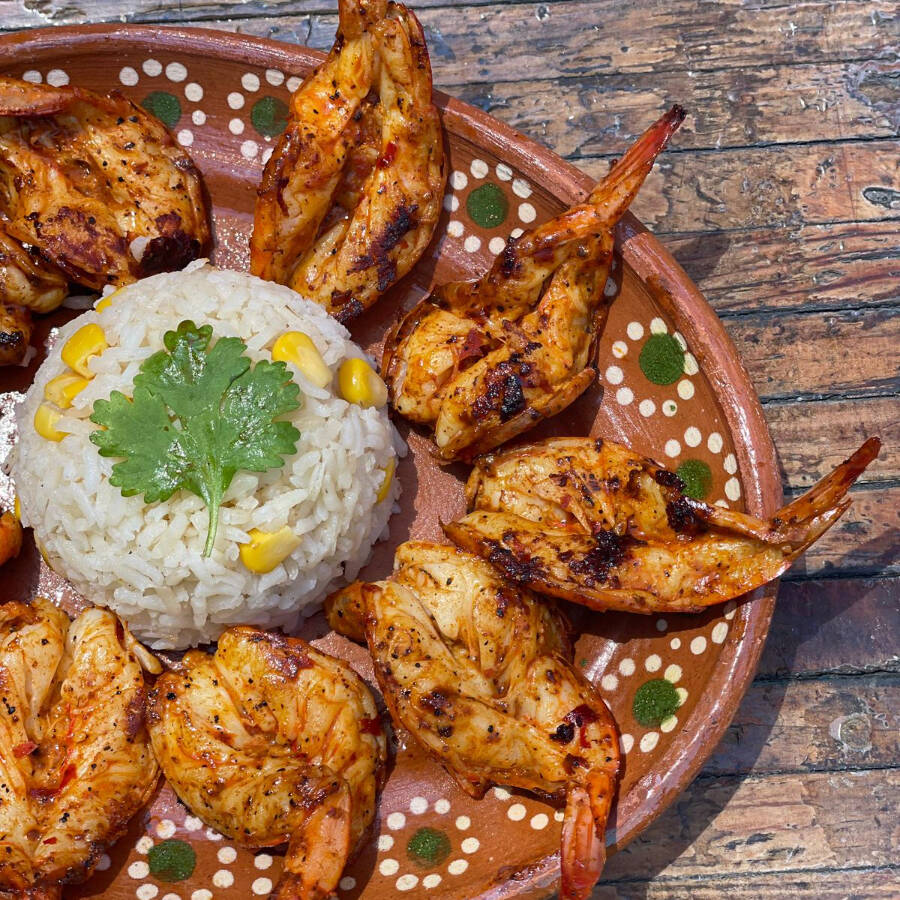 Camarones cocinados al estilo zarandeado: Sazonados con nuestra salsa especial y asados. Acompañados con arroz y un toque de limón. Incluye 4 tortillas de maiz.