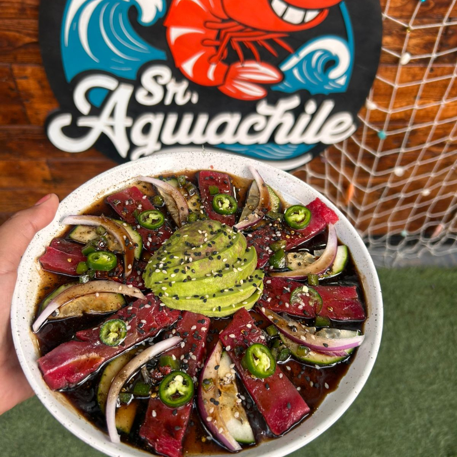 Medallón de atún fresco con pepino, cebolla y cubitos de aguacate, todo bañado en nuestra cremosa salsa oriental —una especialidad de la casa— con un toque de aceite de ajonjolí que realza su sabor con un perfil único y delicioso.