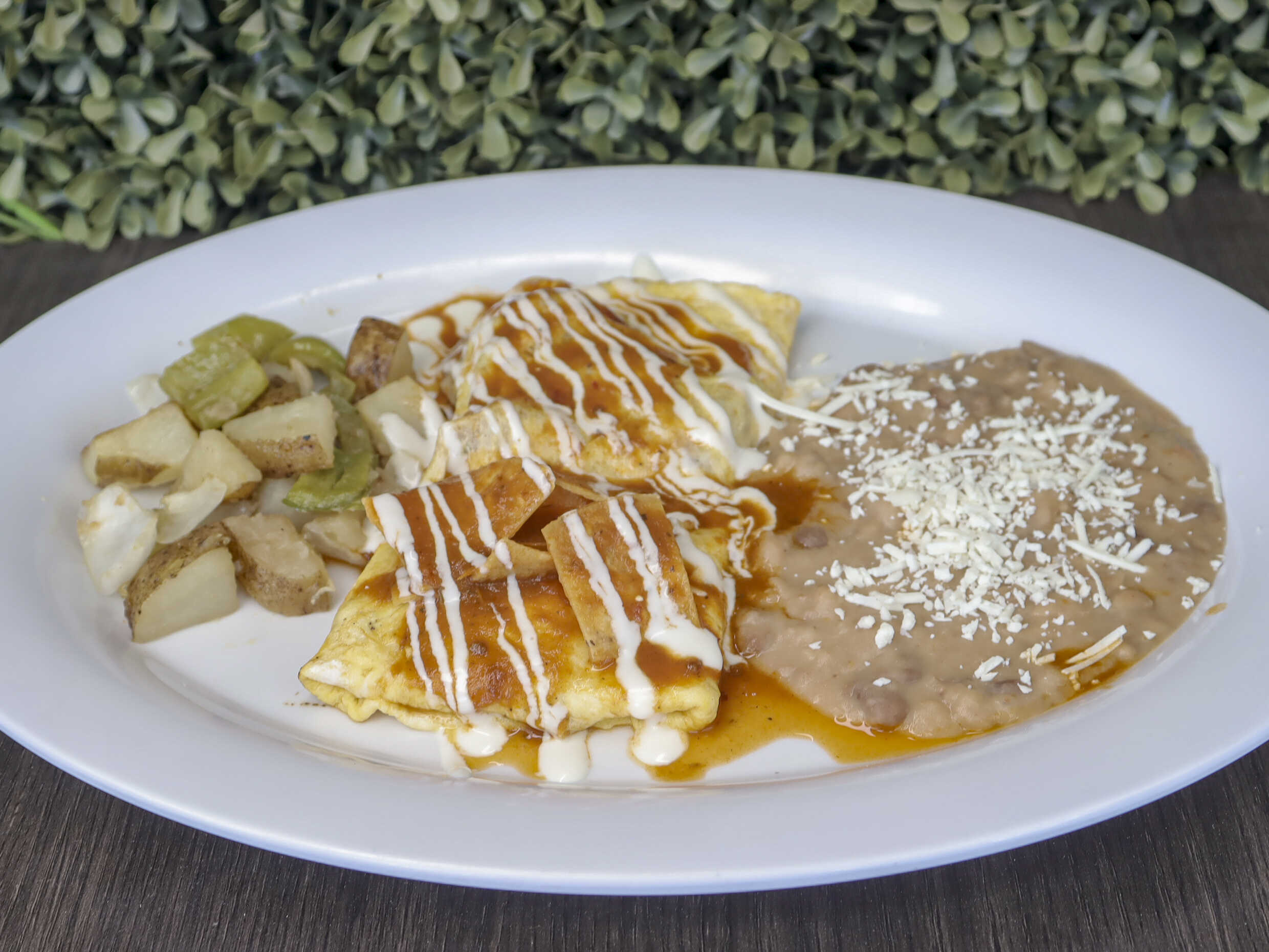 Claras solamente. Acompañados de papas lionesas frijoles.