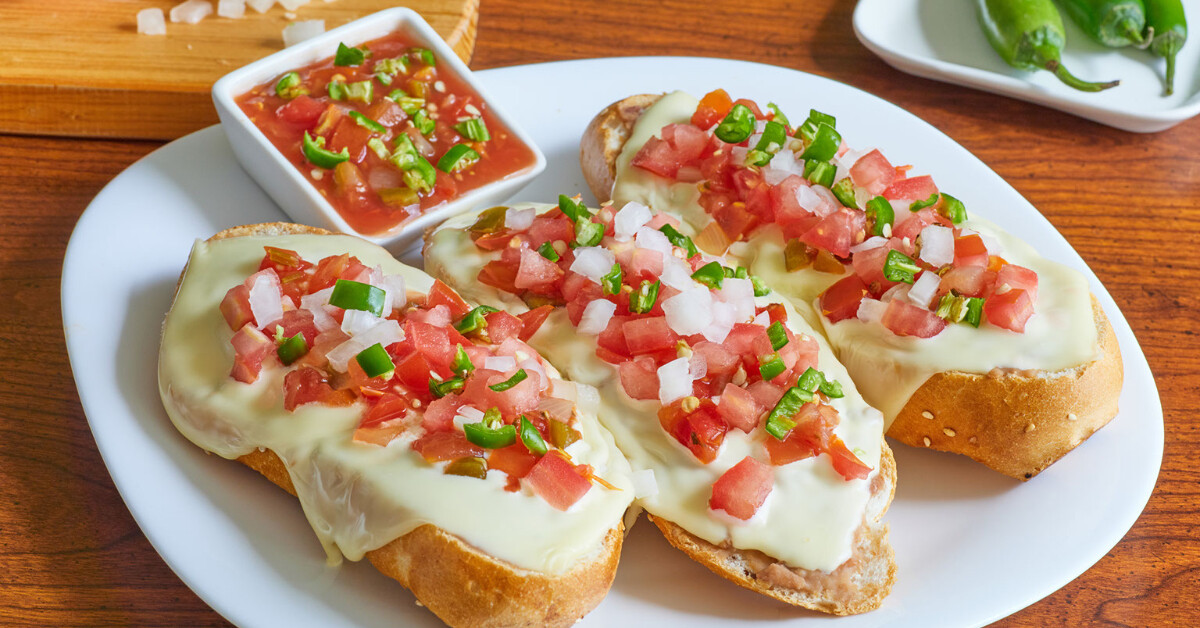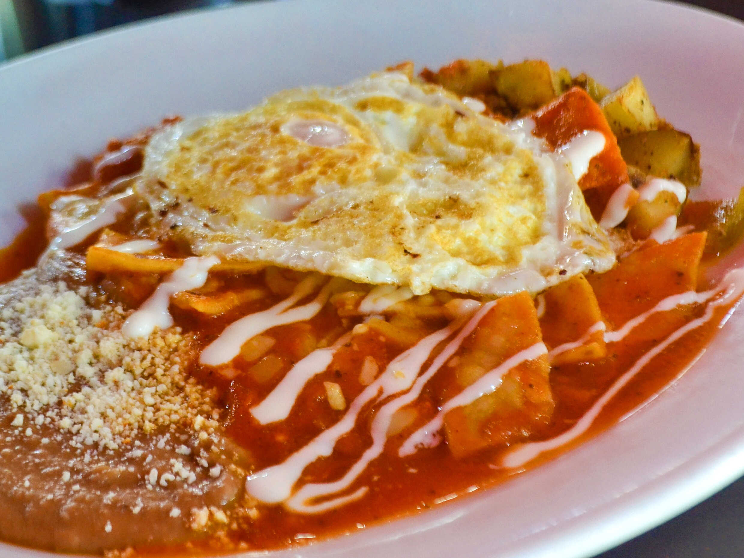 Porción personal: Totopos acompañado con papas lionesas, frijol y huevo. salsa a elegir.
