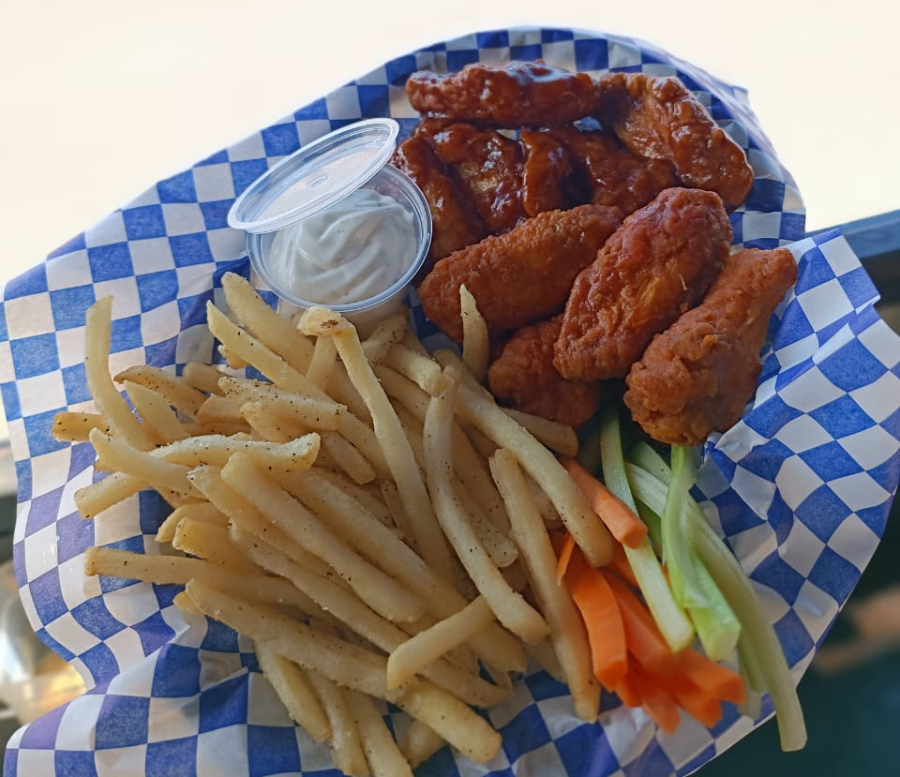 Trozos de pollo crujiente sin hueso Bañados en salsa extra picante.