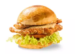 Pan de chia, cubierto con ajonjolí negro, avena y semilla de girasol, pollo crispy, queso gouda, lechuga italiana, steak de tomate y mayonesa