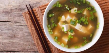 Ramen enchilosa preparada con pastel de pescado, cebollín y alga.
