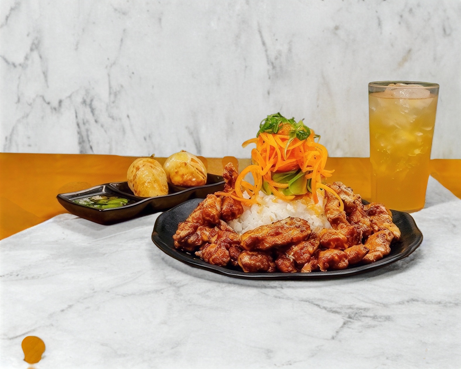 Pollo tempura salteado con nuestra mezcla especial tonkatsu con un ligero sabor a miel espolvoreado con ajonjolí.