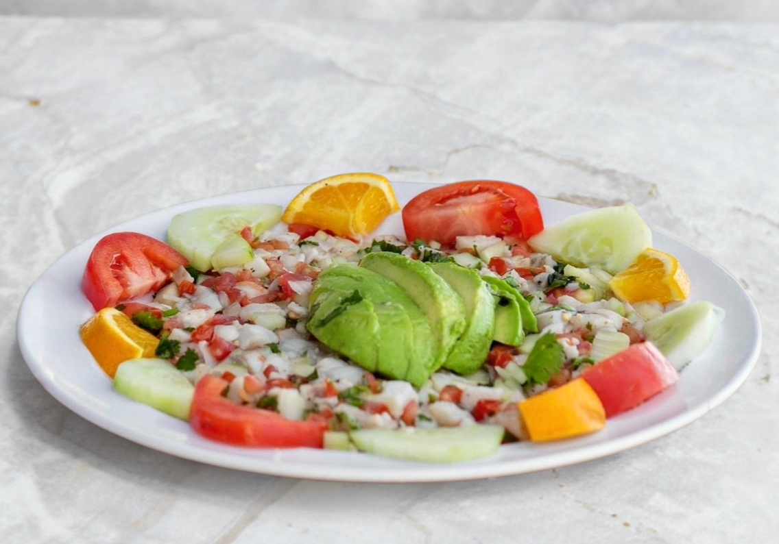 Queso, marlin preparado, repollo, salsa bandera, aderezo