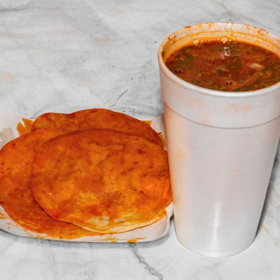 Vaso mediano de 20 Oz de birria con verduras al gusto