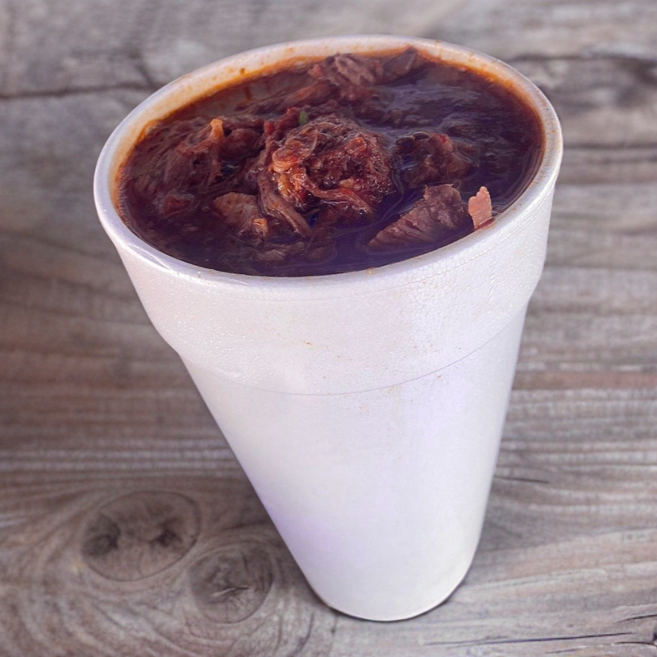 Porción pequeña de birria, ideal para antojos o para acompañar otros platillos.
