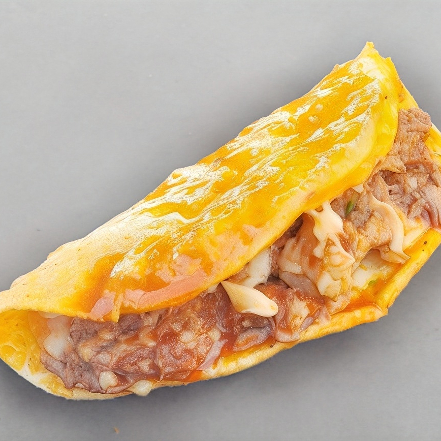 Taco dorado con carne y queso mozzarella fundido en la plancha. Salsa por separado.