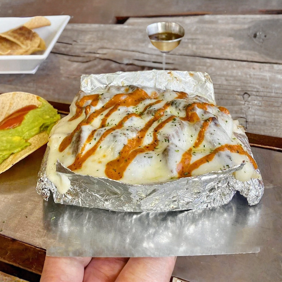 Guacamole, cilantro, cebolla, queso GRATINADO.