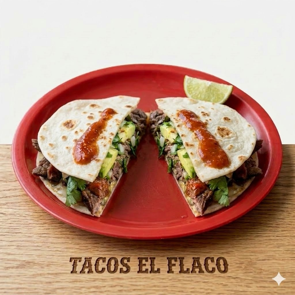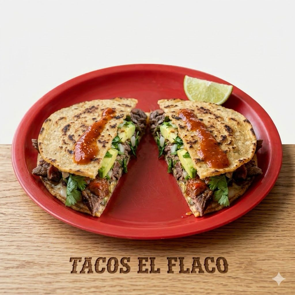 Combinación de carnes a elegir con doble queso entre dos tortillas maíz o harina.