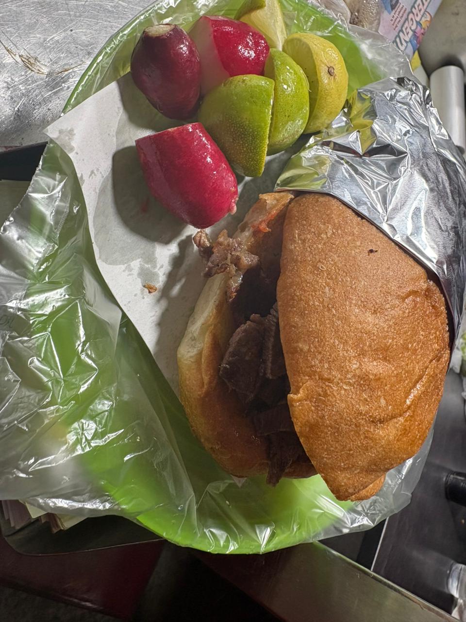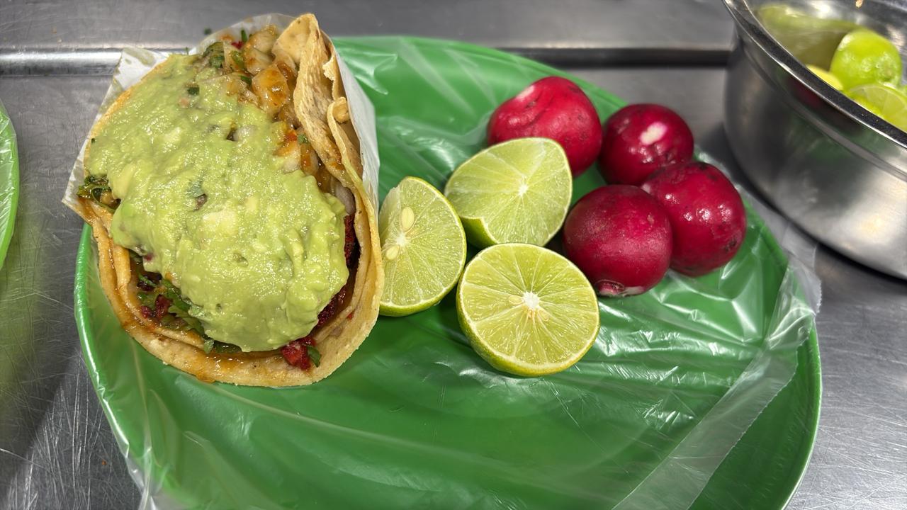 1 kg de carne adobada ,Cuenta con cebolla, cilantro, salsa, guacamole, limones y tortillas, todo aparte.