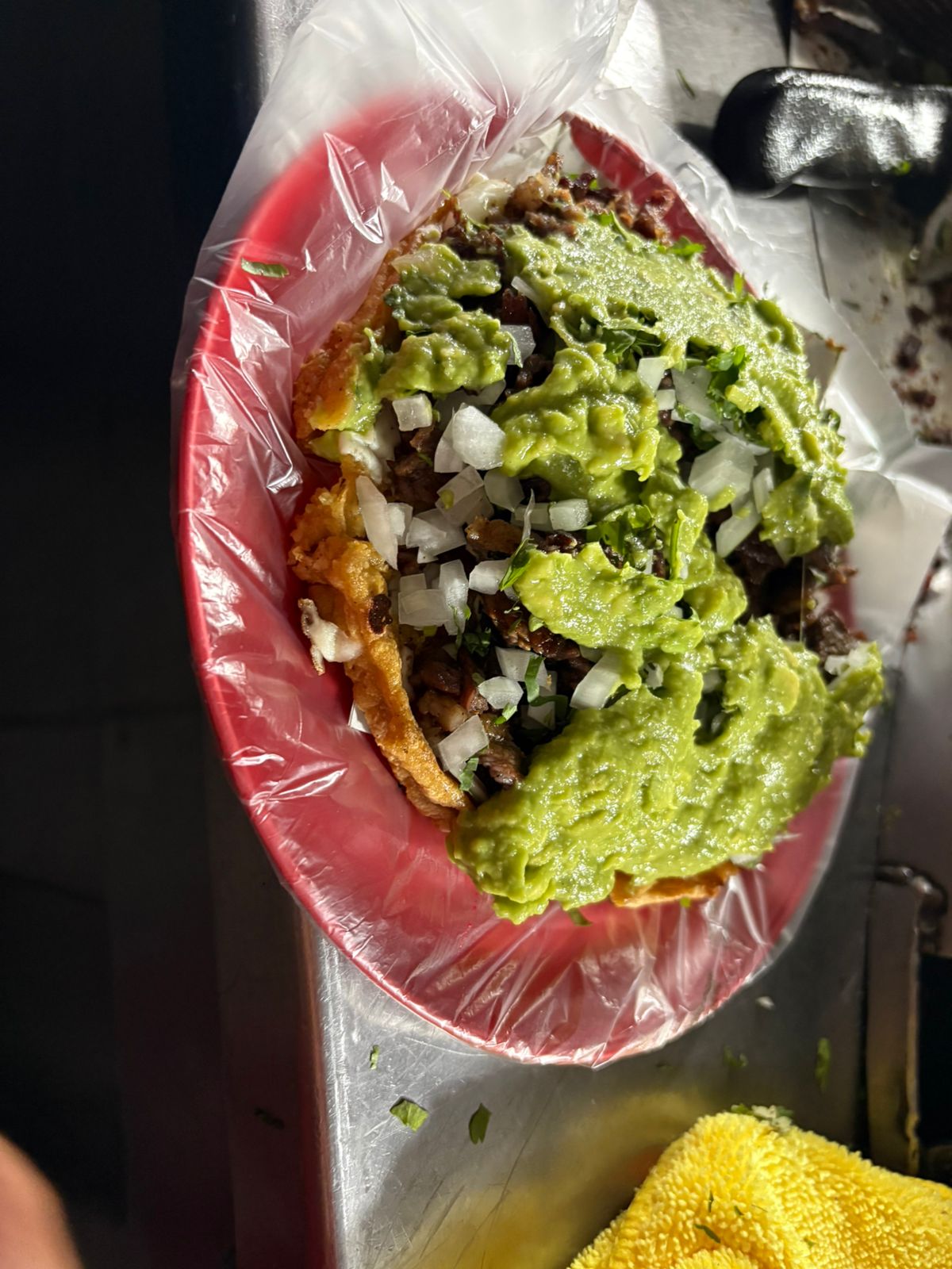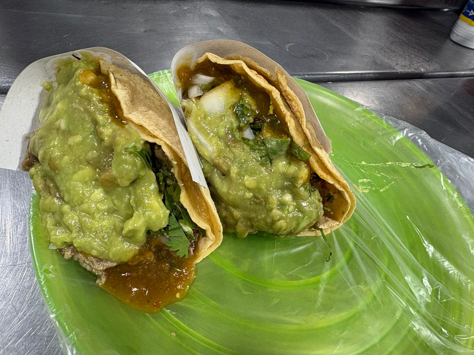 Carne a elegir, con cebolla, cilantro, salsa y aguacate.