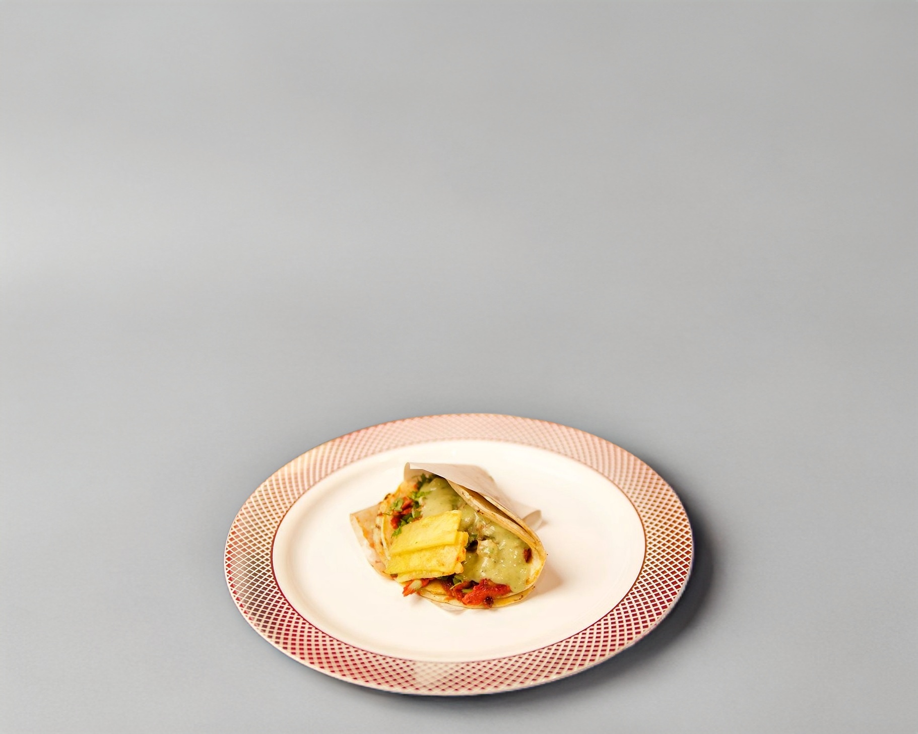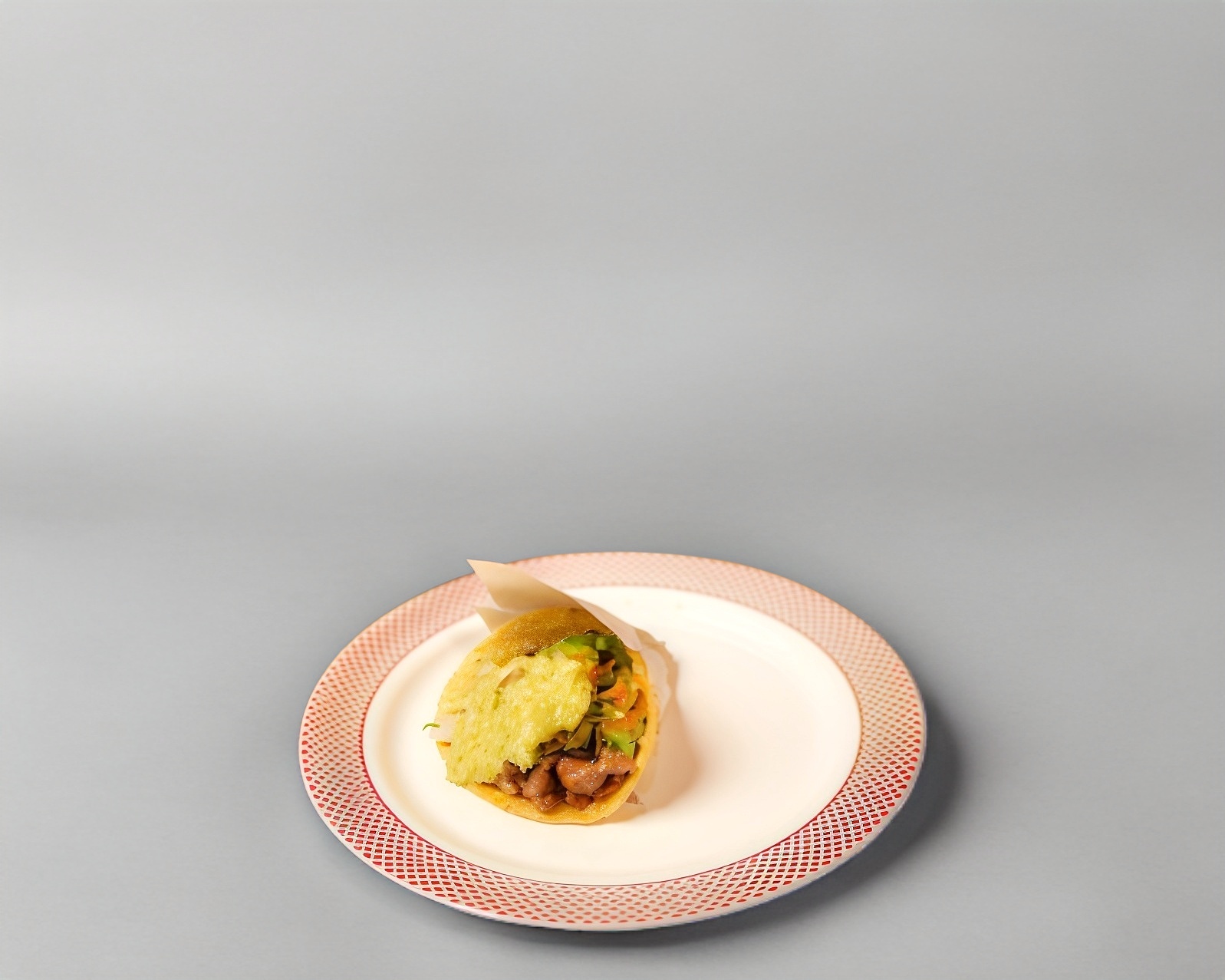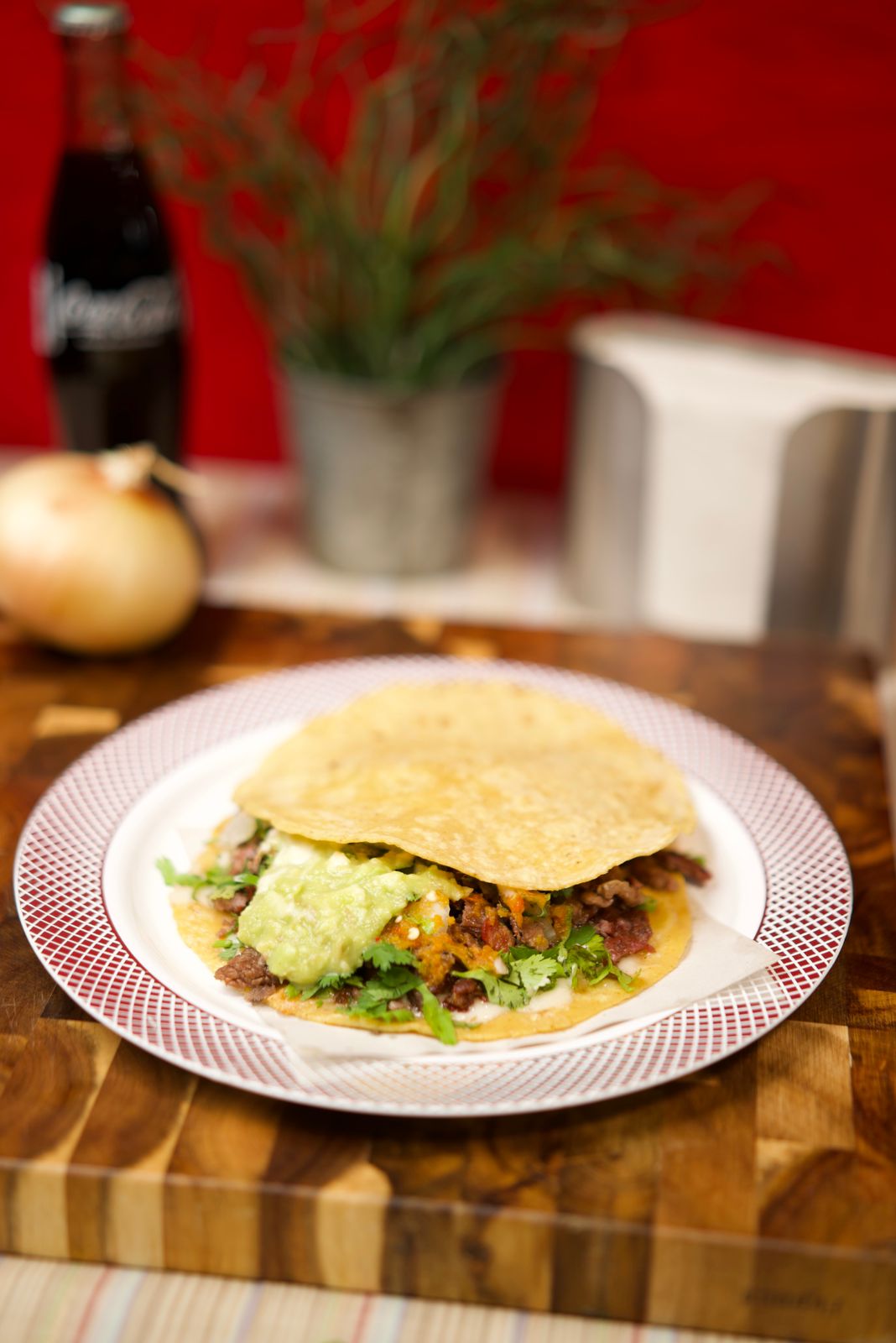 Plato personal, elección de 2 carnes. Cilantro, cebolla, frijol, aguacate, aderezo, salsa o crema.