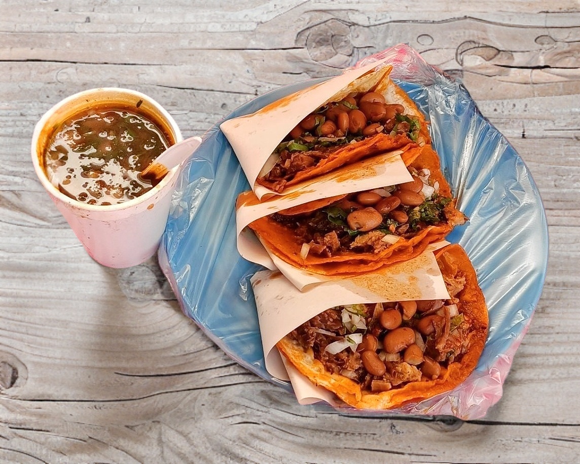Producto individual: prepara tu consomé (6 oz, sin carne) + 3 tacos al gusto + soda a elección.