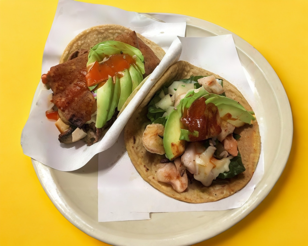 Taco Maiz Ny con Camaron, Taco Harina con Camaron.
