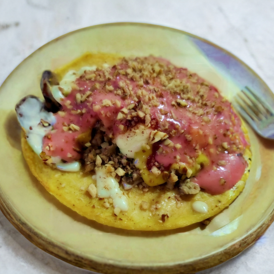 Carne asada con salsas dulces mango fresa cereza trozos de piña queso y nuez natural