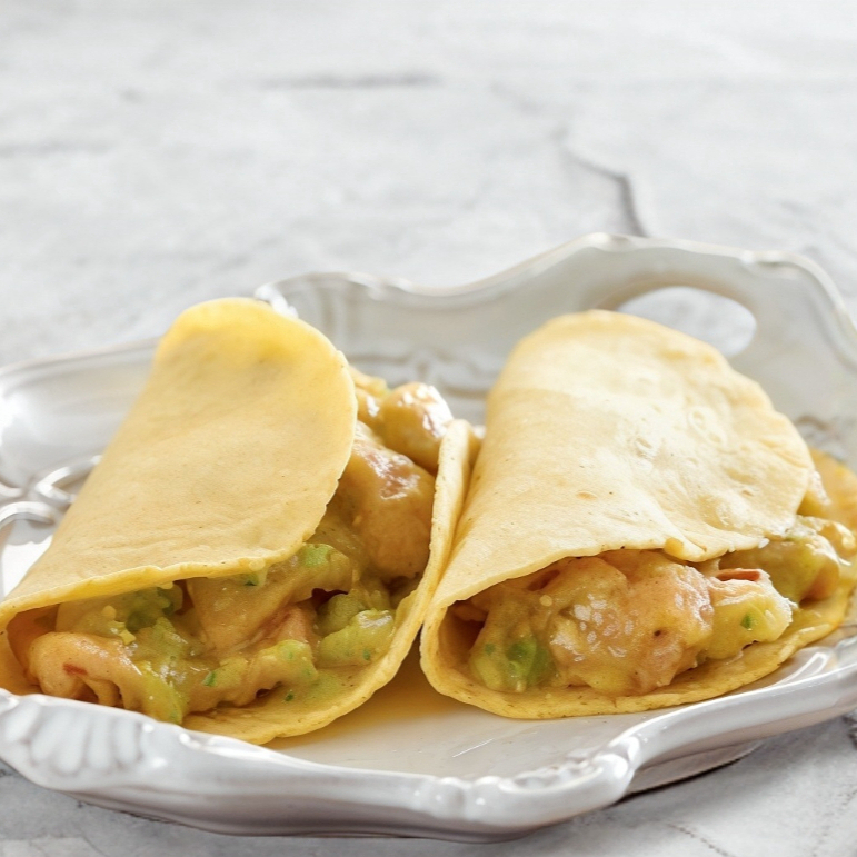 (Por unidad ) Incluye arroz y frijol, acompañados de salsa verde con aguacate