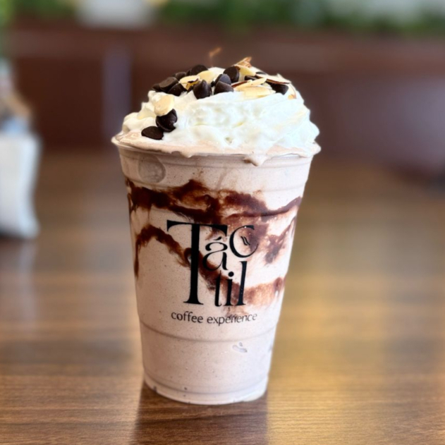 Refrescante y dulce frappe inspirado en la paleta magnum, con chocolate avellana y trozos de almendra y chispas de chocolate. Sin cafe espresso.