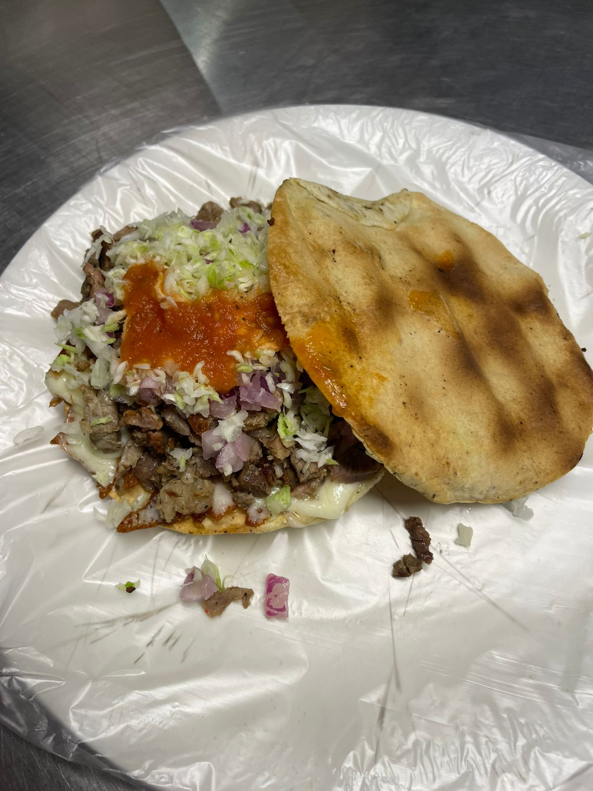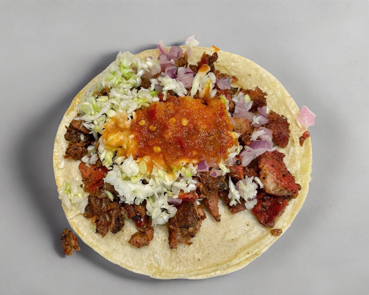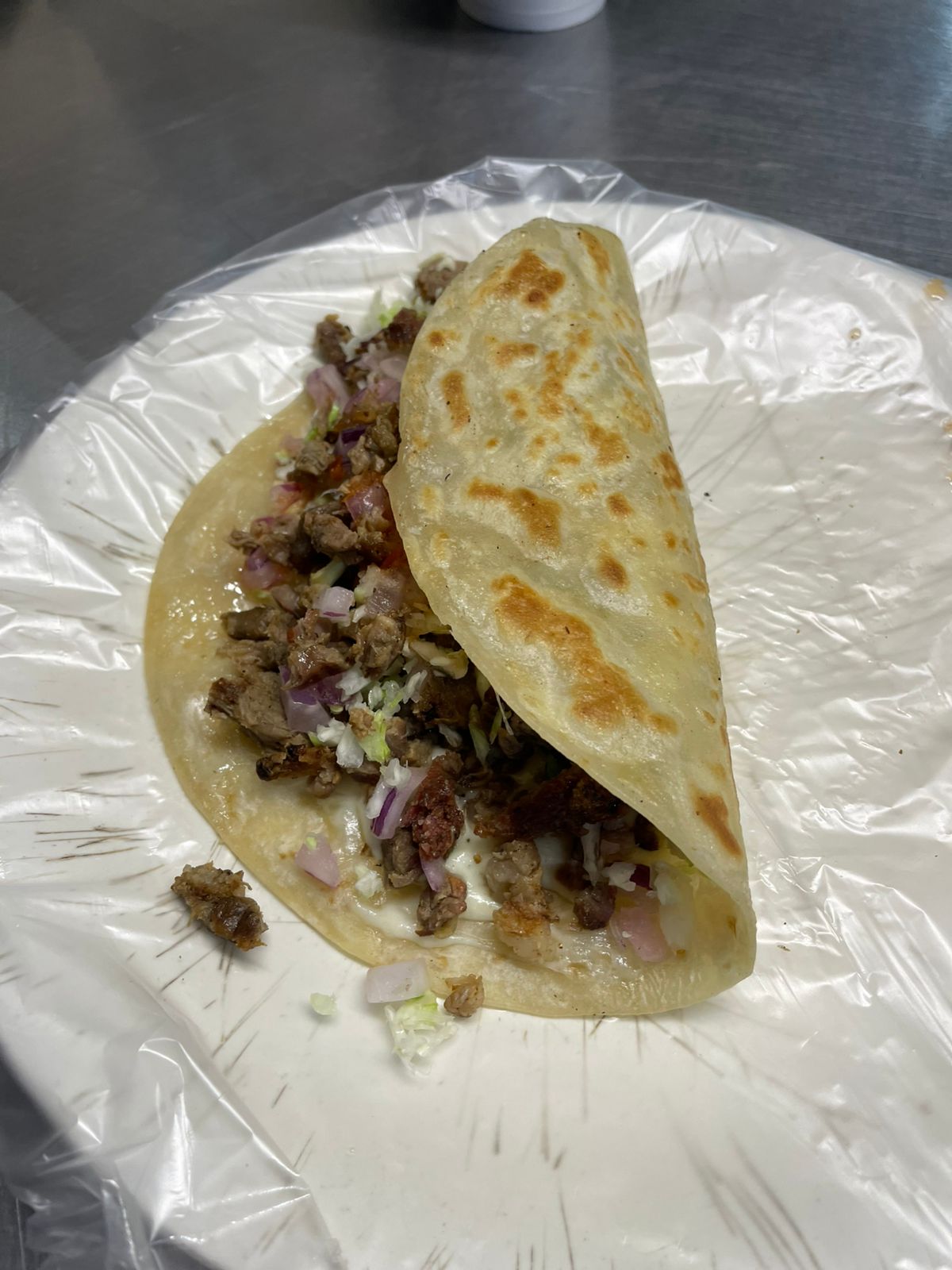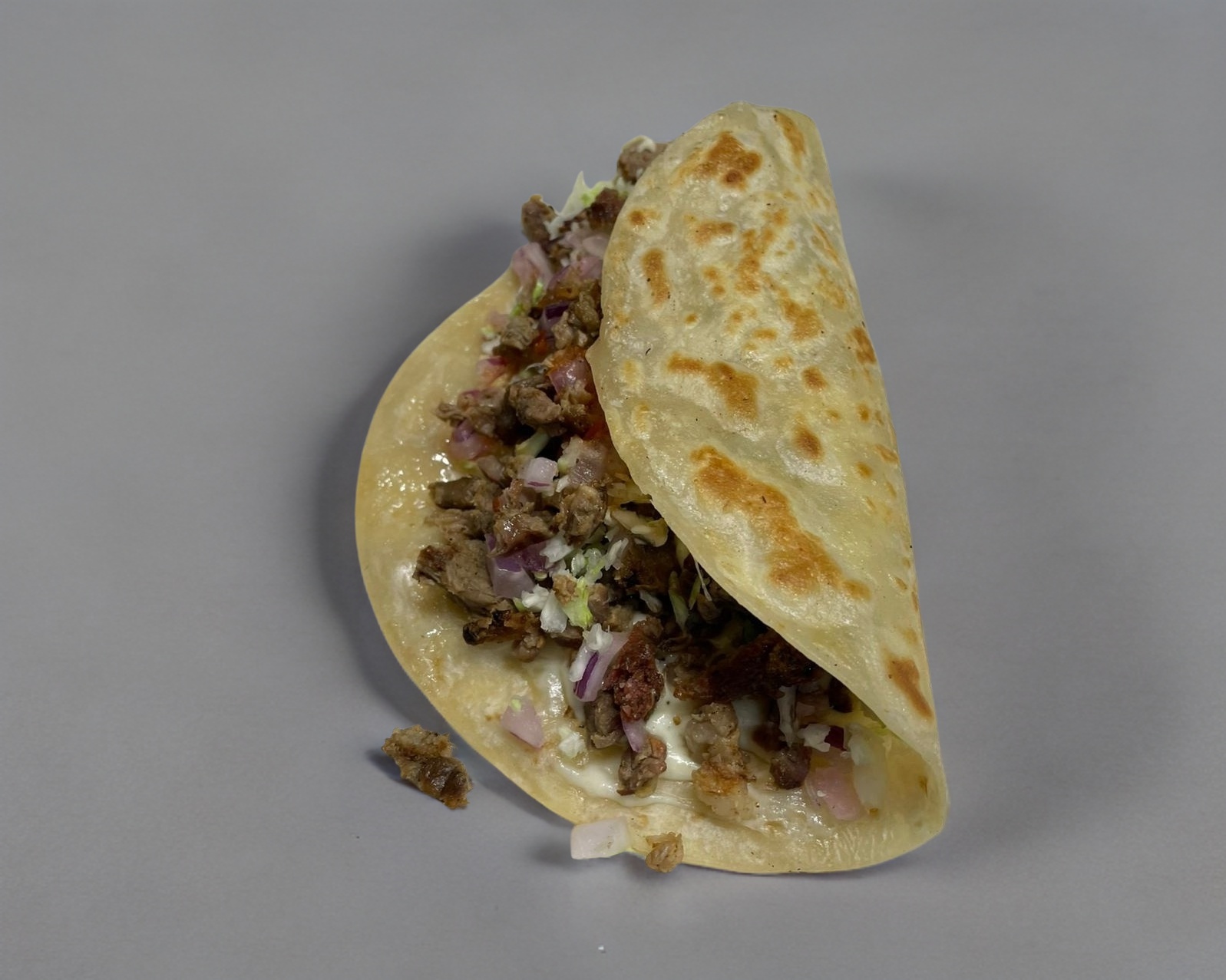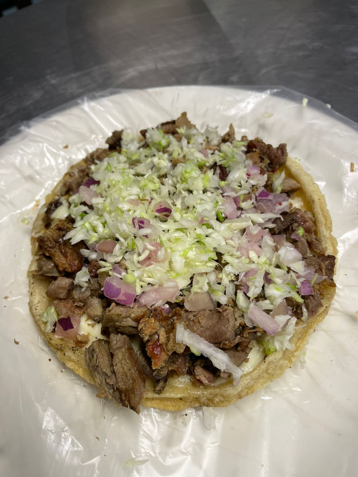 Taco con carne adobada y verduras a su elección.