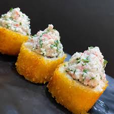 relleno de philadelphia, aguacate, con tampico y va empanizado o natural