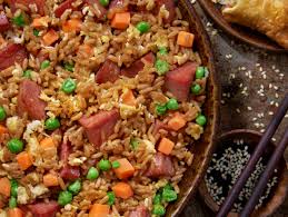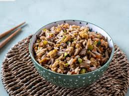 deliciosa cama de arroz frito, acompañada de verduras a la plancha, pollo , camaron y res. con cebollin y ajonjoli
