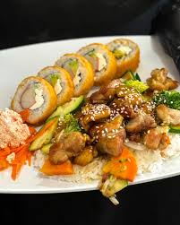 delisiosa combinacion de teriyaki ede pollo y mitad california