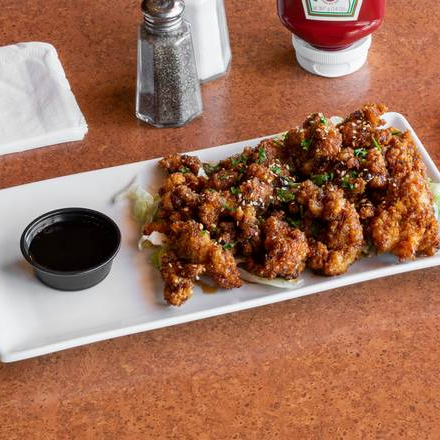 Tiras de pollo fritas empanizadas con pan japones y salseadas con nuestra signature glaze y ajonjoli.
