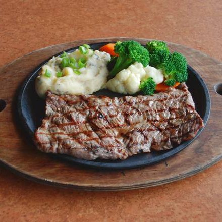 Jugosa carne asada a la parrilla al termino de tu elecccion, bañanada con uestra exclusiva salsa signature,en un pan brioche, con queso Monterey jack, tocino, jitomate, lechuga, cebolla y papas fritas.