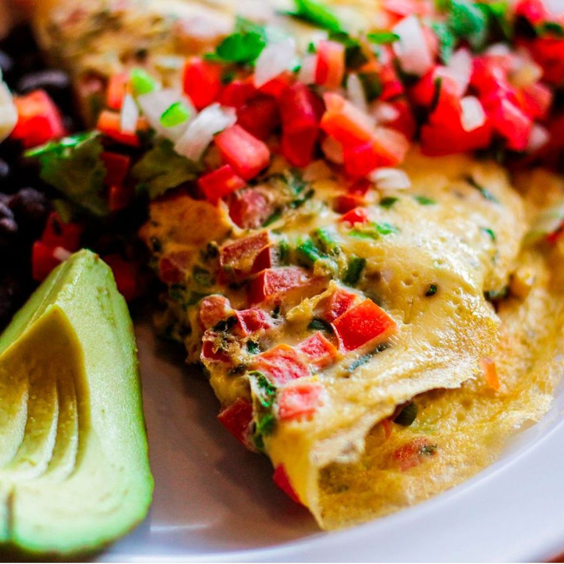 Huevo, Mezcla con salsa mexicana, rajas, elote tierno tatemado, champiñones y queso panela.