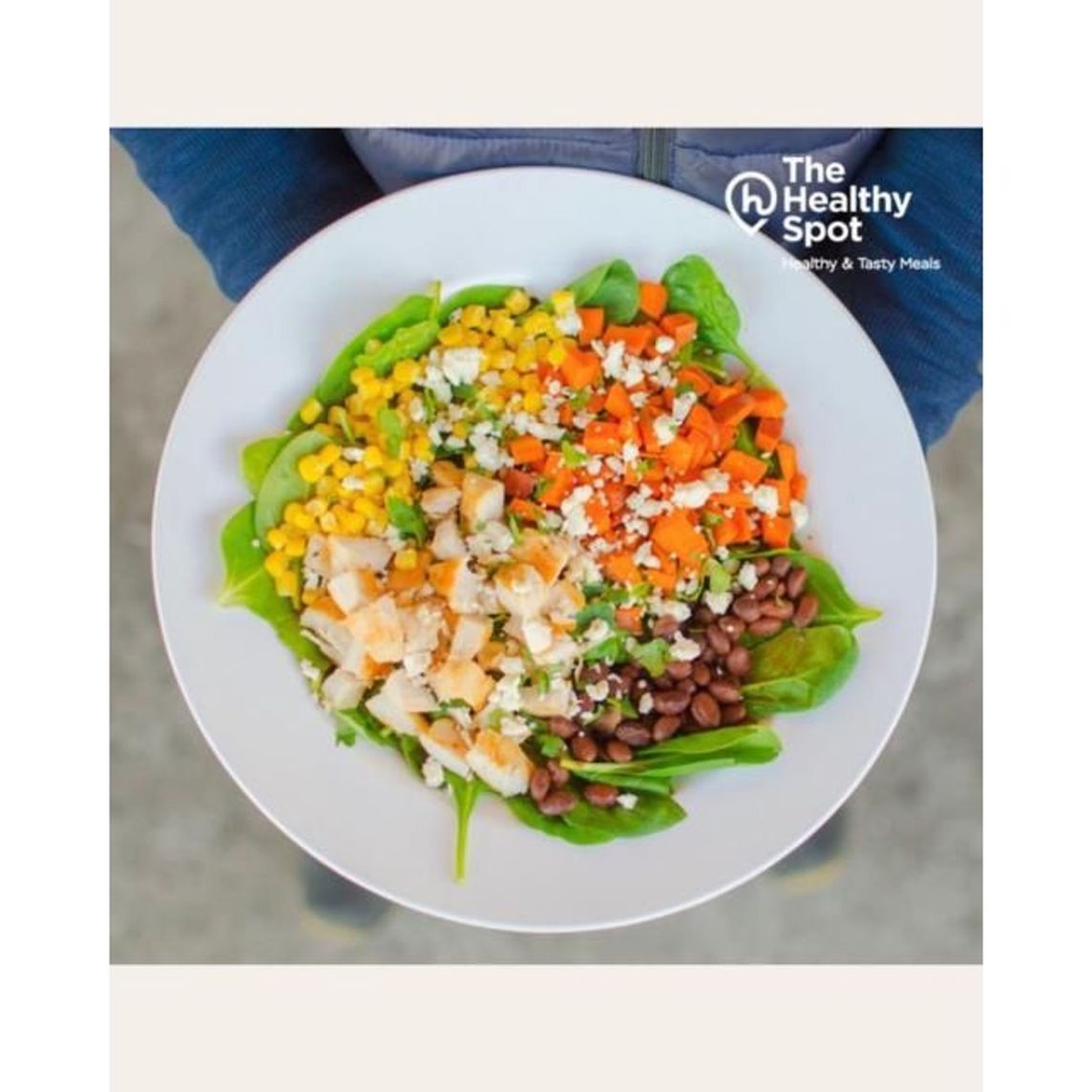Espinacas, frijol, camote, elotito, cilantro, queso feta y aceite de oliva