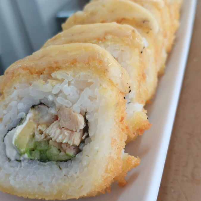 Pollo empanizado, Philadelphia, aguacate, pepino