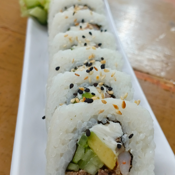 Camarón, Res, Philadelphia, aguacate y pepino