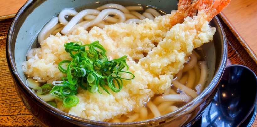 Sopa de udon con agedama.