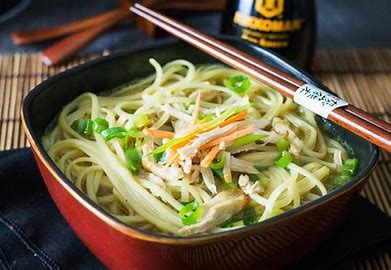 Sopa de fideo con pollo.