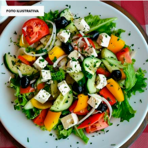 Lechugas mixtas, aguacate, champiñones, tomate, pepino, queso parmesano, vinagreta balsámica casera, aceituna negra y pimiento.