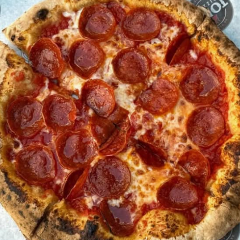 Pepperoni, salsa de tomate, queso mozzarella. Agegar orilla de queso mozzarella es adicional.
