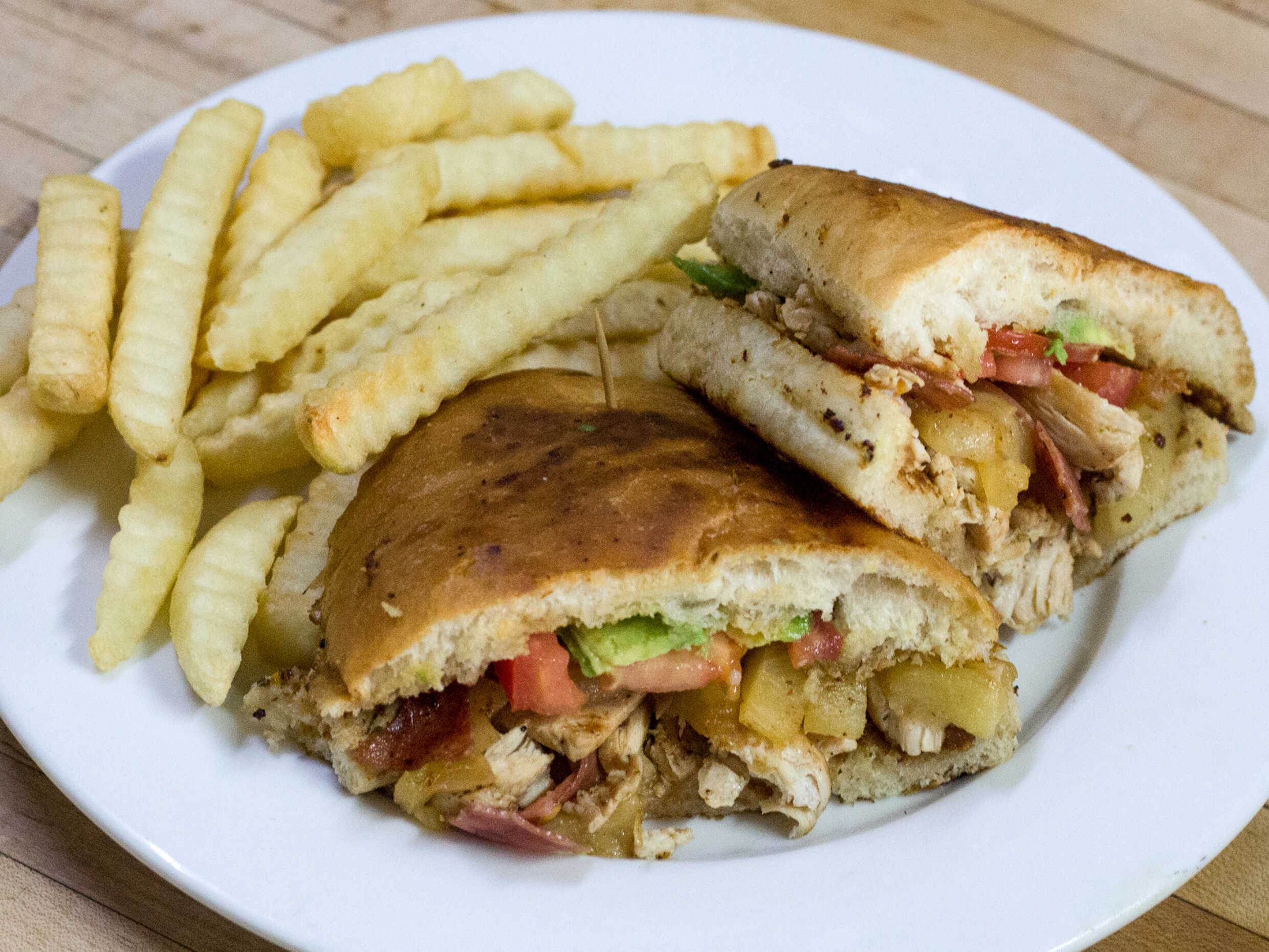 Pechuga asada, tocino, piña, jamón y nuestra salsa teriyaki de la casa