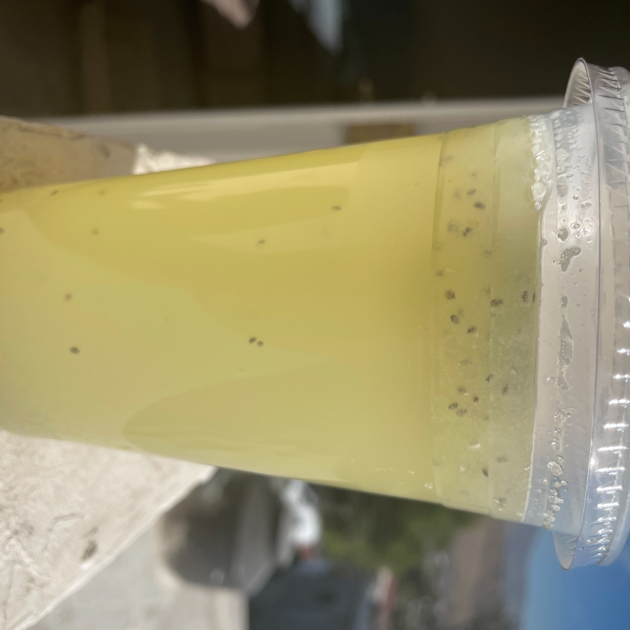 Agua de limon mix con pepino y chía naturales, vaso 16 oz . Muy refrescante para calor