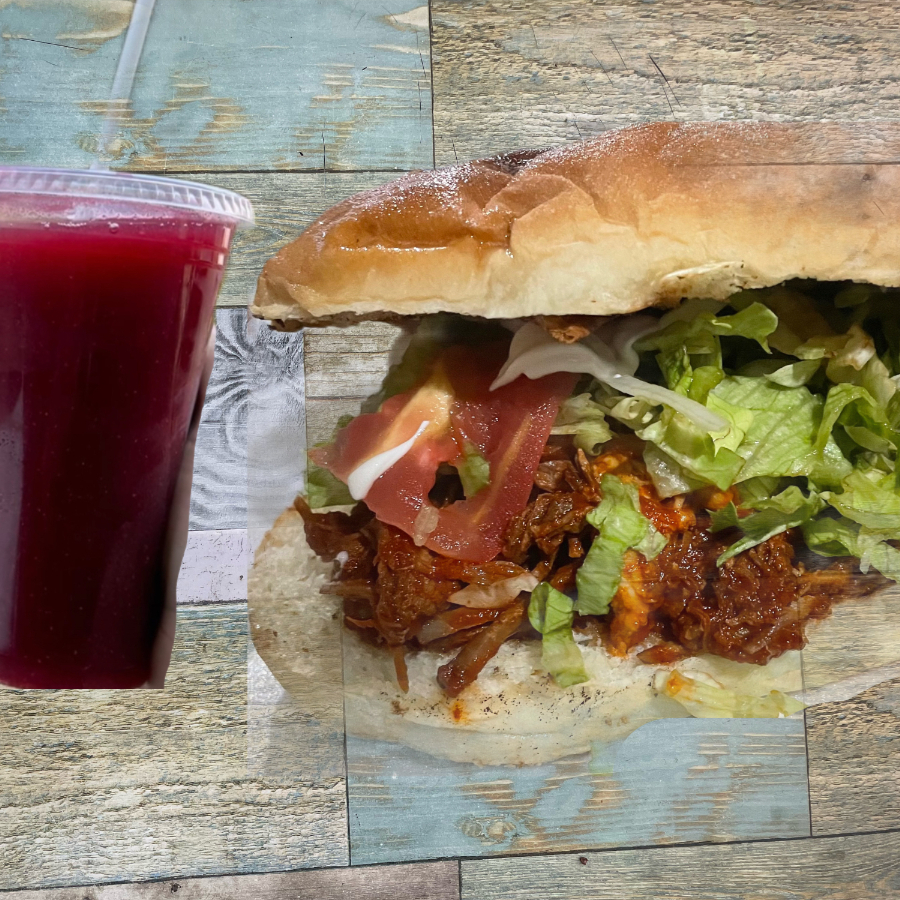 Torta De Pierna Deshebrada*1 + Agua Natural de Jamaica Vaso 16 Oz*1