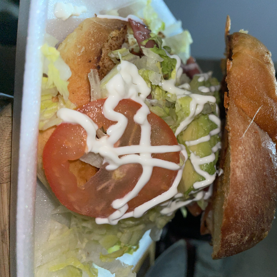 Pan artesanal...Milanesa de pollo empanizado frito, queso monterrey,jitomate, cebolla, lechuga, aguacate, crema y chiles en vinagre. Acompañada de nuestra deliciosa salsa