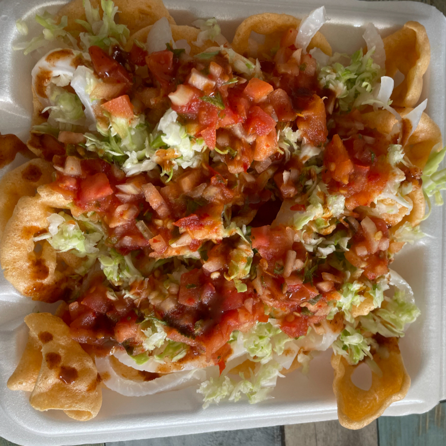 Frituras preparadas con cueritos en vinagre, repollo y nuestra salsa secreta (picante)