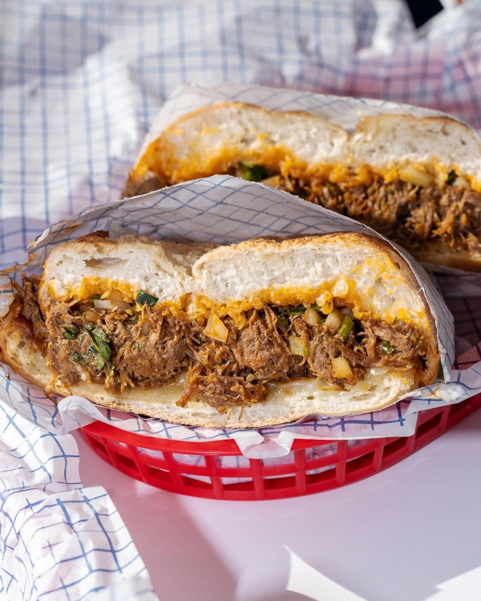 Birria, costra de queso, cebolla y cilantro.