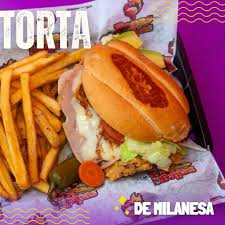 hamburguesa de milanesa de pollo con papas y refresco