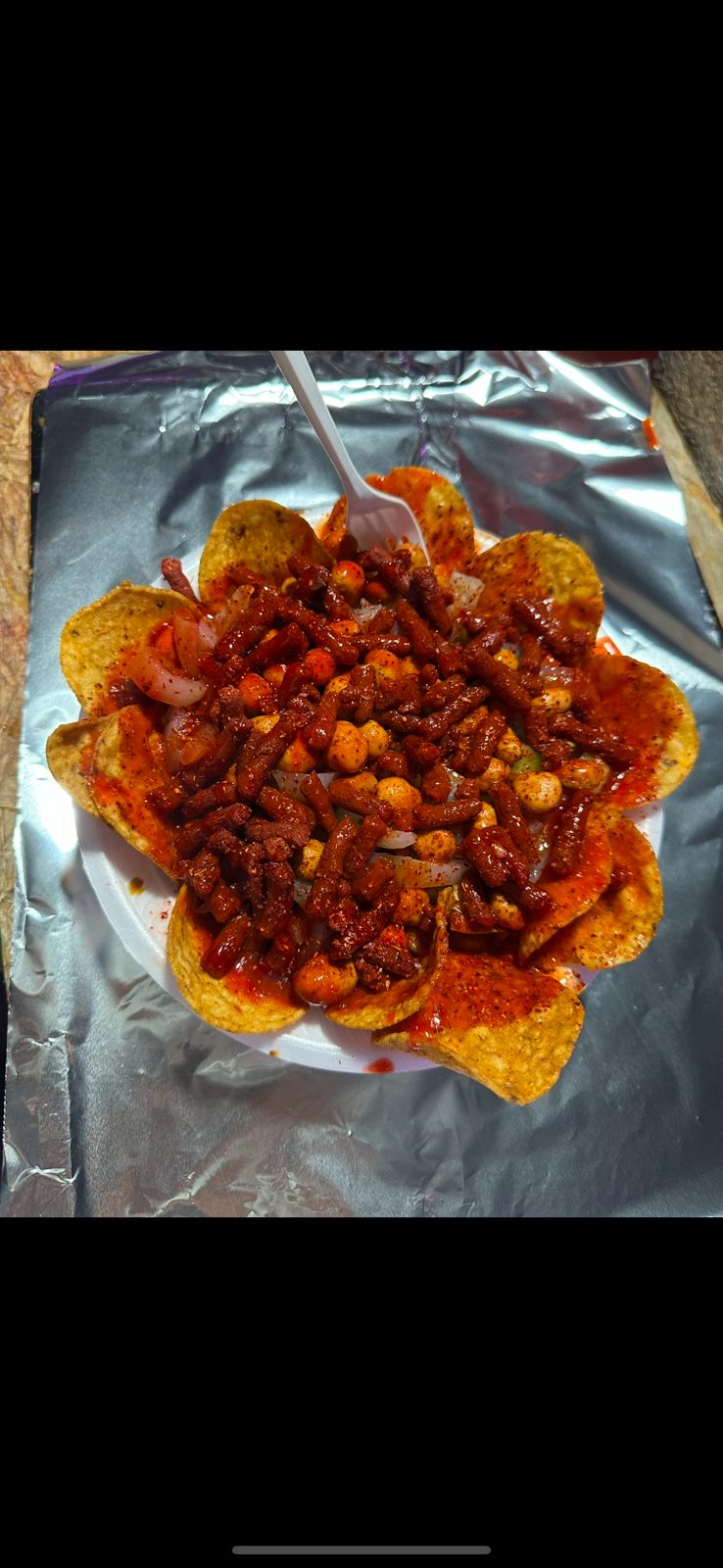 Charola de 7 X 7 Tostitos con pepino jicama cacahuate chaca chaca variedad de gomitas bañados con clamato chamoy salsa botanera salsa magui tajin y limon