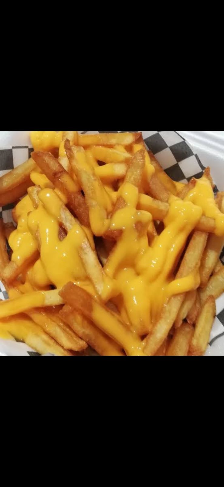 papas fritas bañadas con queso amarillo