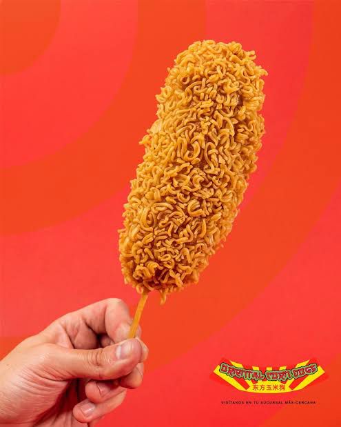 banderilla coreana rellena de queso y salchicha empanizada con doritos queso