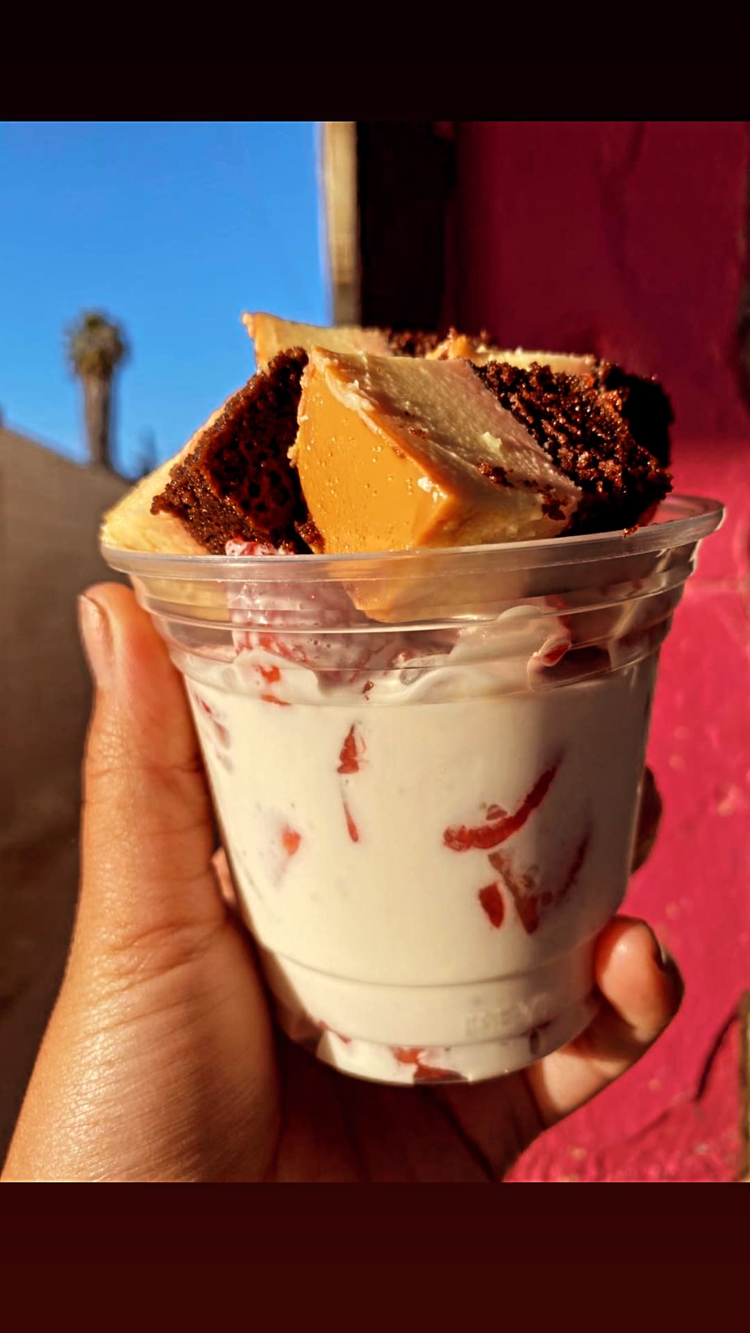 Ricas Fresas con Crema con Chocoflan (Vaso grande de 16 OZ)