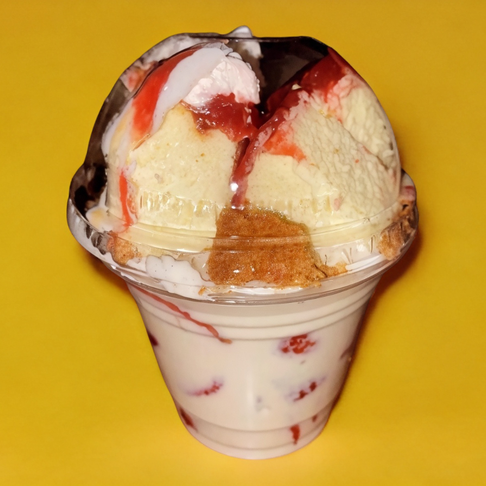 Ricas Fresas con Crema con Cheescake (Vaso Grande de 16 Oz.).